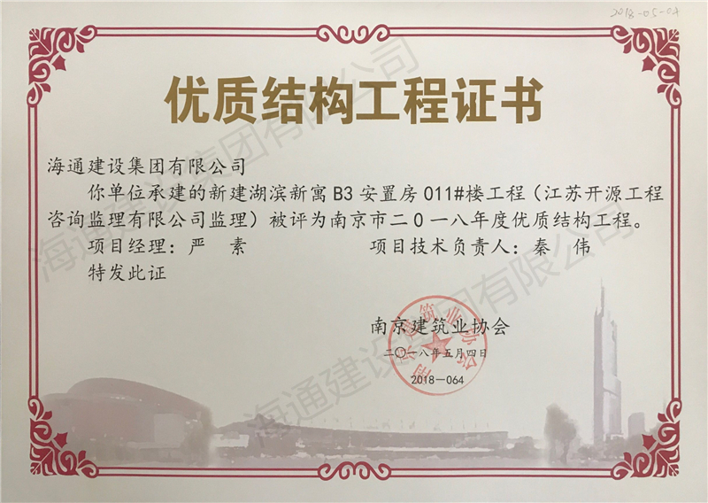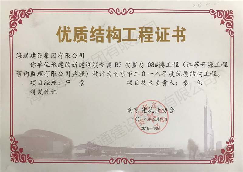 南京市優(yōu)質(zhì)結(jié)構(gòu)2018-新建湖濱新寓B3安置房08#樓工程