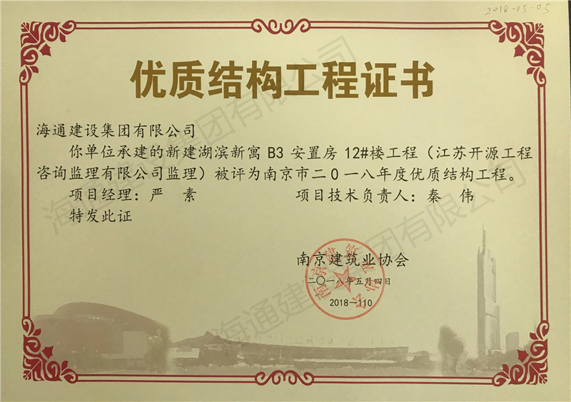 南京市優(yōu)質(zhì)結(jié)構(gòu)2018新建湖濱新寓B3安置房12#樓工程