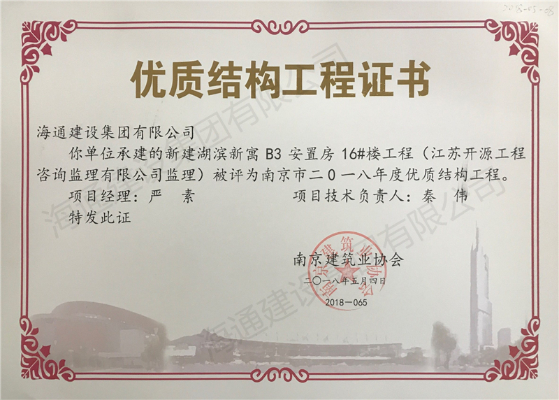 南京市優(yōu)質(zhì)結(jié)構(gòu)2018-新建湖濱新寓B3安置房16#樓工程