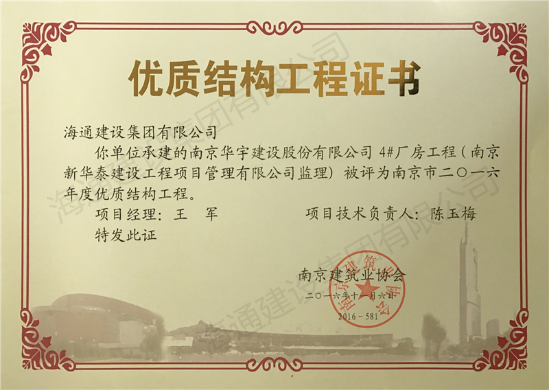 南京市優(yōu)質(zhì)結(jié)構(gòu)2016南京華宇建設(shè)股份有限公司4#廠房工程