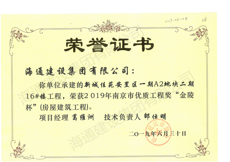 南京市金陵杯2019新城佳苑安置區一期A2地塊16#樓工程