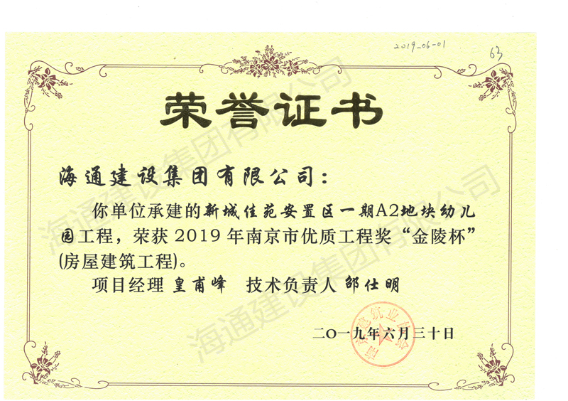 南京市金陵杯2019新城佳苑安置區一期A2地塊幼兒園工程