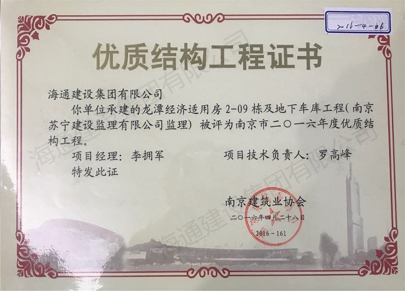 南京市優質結構2016龍潭經濟適用房2-09棟及地下車庫工程