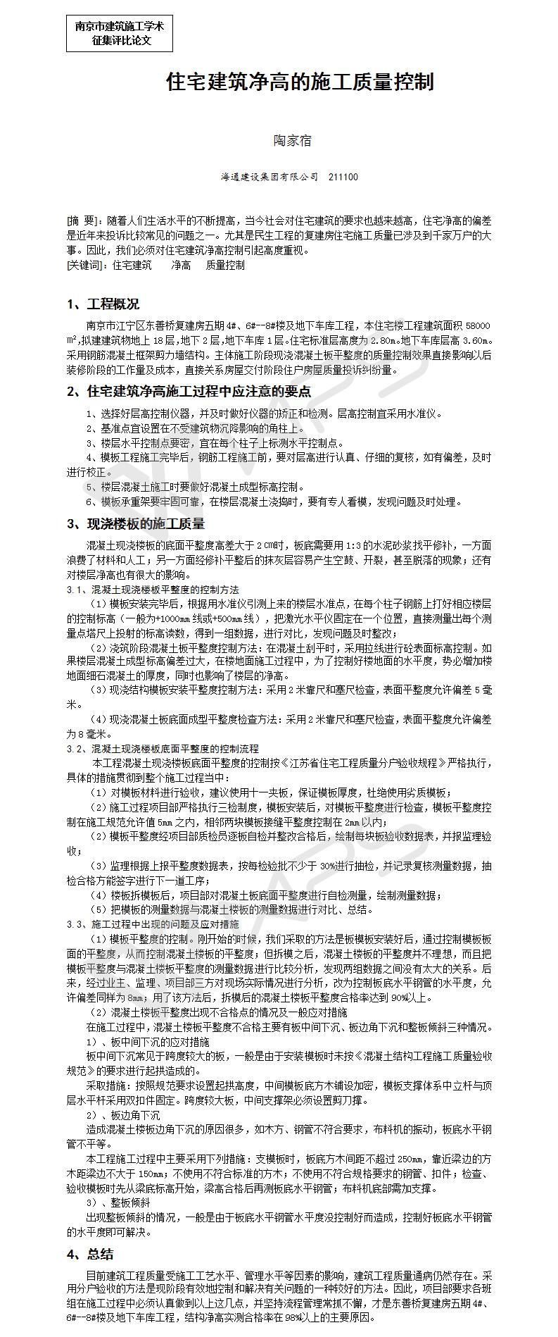 住宅建筑凈高的施工質量控制