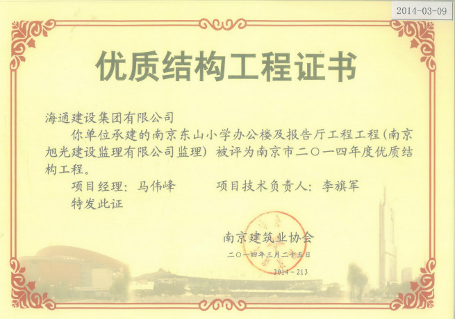 南京東山小學辦公樓及報告廳工程2014年度優質結構工程