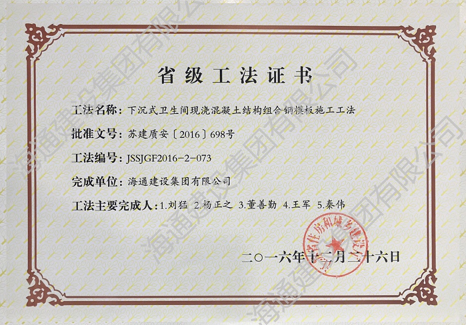 下沉式衛生間現澆混凝土結構鋼模板組件施工工法