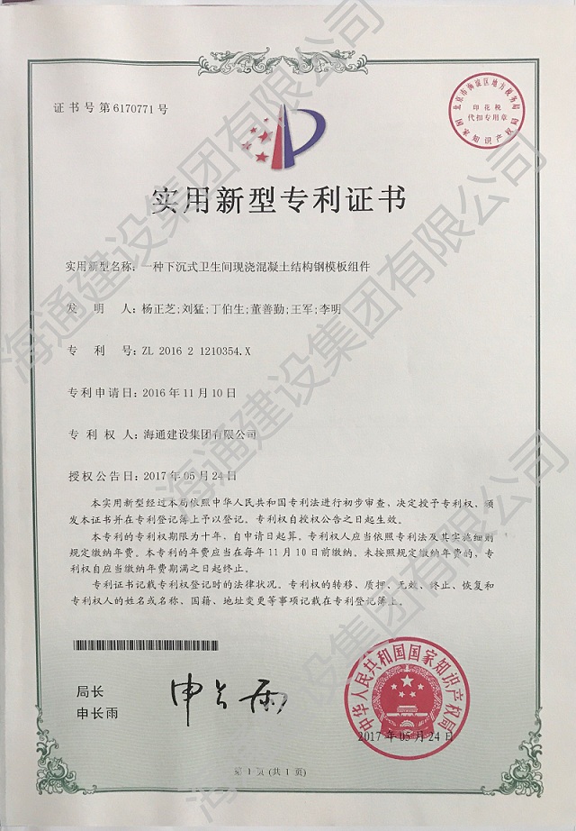一種下沉式衛(wèi)生間現(xiàn)澆混凝土結(jié)構(gòu)鋼模板組件 實(shí)用新型