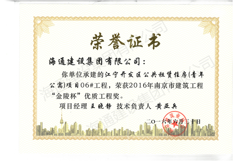南京市金陵杯2016江寧區(qū)開(kāi)發(fā)區(qū)公共廉租房項(xiàng)目06#工程