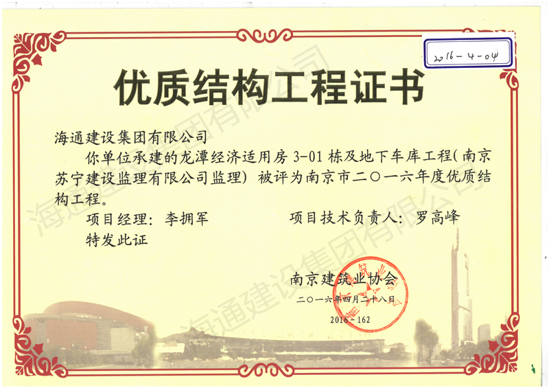 南京市優(yōu)質(zhì)結構2016龍?zhí)督?jīng)適房3-01棟及地下車庫