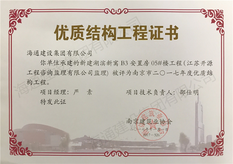 南京市優質結構2017新建湖濱新寓B3安置房05#樓工程