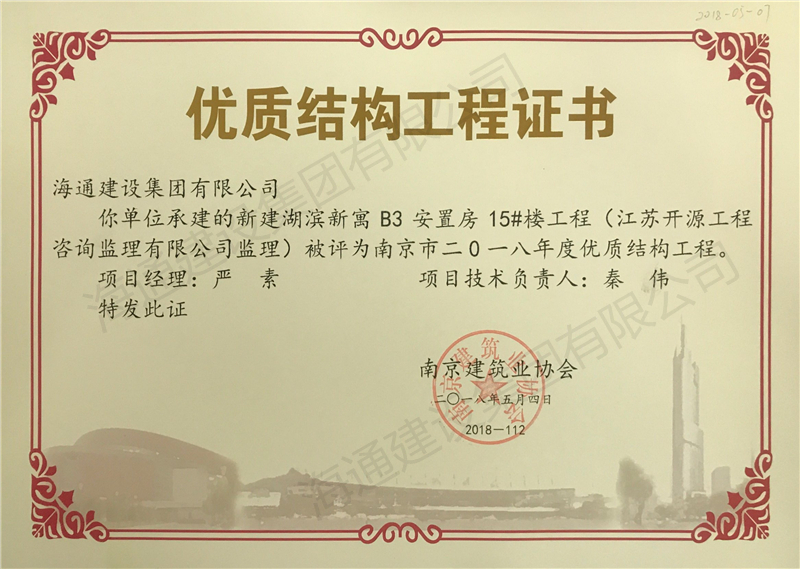 南京市優質結構2018-新建湖濱新寓B3安置房16#樓工程