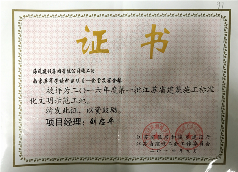 江蘇省文明工地2016南京英華學校擴建項目-食堂及宿舍樓